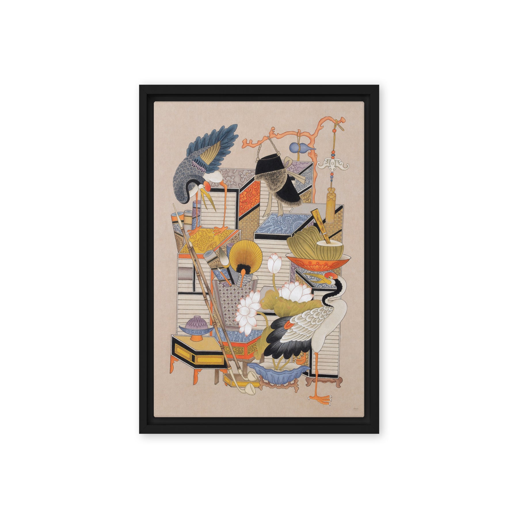 Die gerahmte Leinwand aus Kiefernholz hat Gummipolster an den Ecken, eine vormontierte Wandhalterung und einen schwebenden Rahmen für mühelose Eleganz.