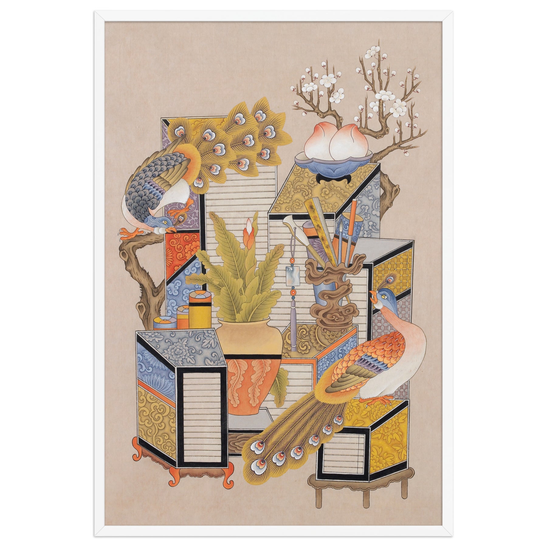 Mit diesem gerahmten Poster - Sehnsucht nach Wissen mit Pfau setzt du in jedem Raum ein markantes Zeichen. Gedruckt auf hochwertigem, dickem, mattem Papier.