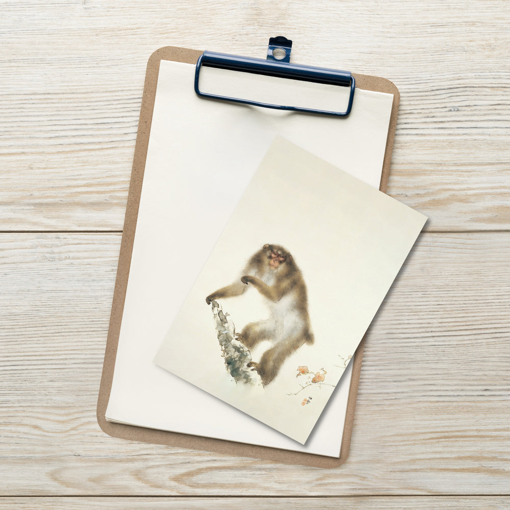 Postcard - Hashimoto Kansetsu, Old Monkey with Cherry in Autumn