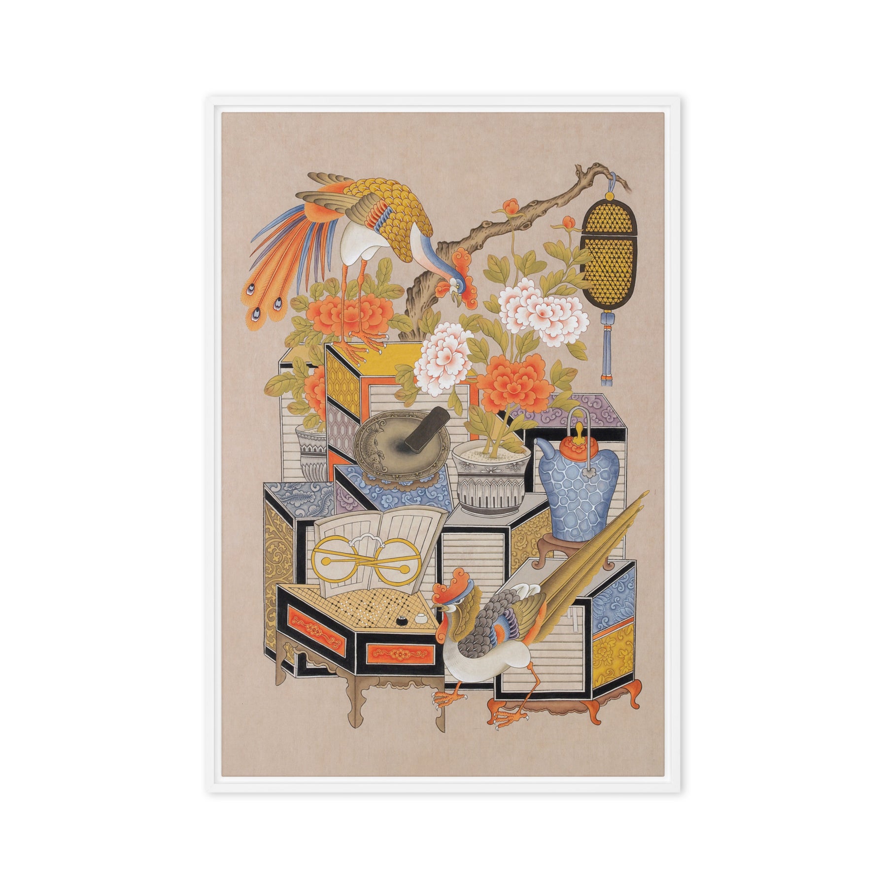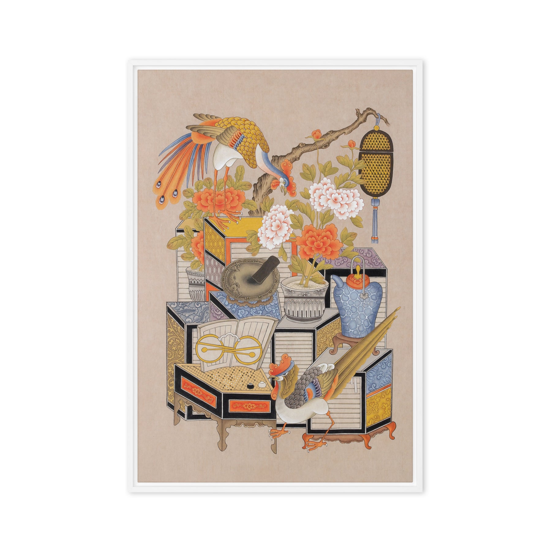 La toile en pin encadrée est dotée de coussinets en caoutchouc aux coins, d'un support mural pré-attaché et d'un cadre flottant pour une élégance sans effort.